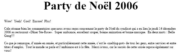 Un petit mot pour te dire que la soirée a été une réussite. Tout le
